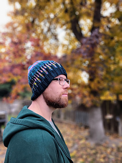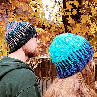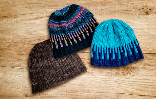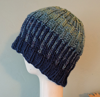 The Petrichor Beanie is knit from the brim to the crown. The brim is worked beginning in color A, then joined for a number of colorwork rounds with color B, then finished off in only color B. The pattern is also easily adaptable to a one-color pattern by following the pattern instructions entirely in one color.