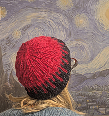Sizes: Adult small, (medium, large), to fit head circumference of 20” (22”, 23.5”). Negative ease of about 3” is recommended for this pattern to insure a snug fit.