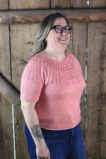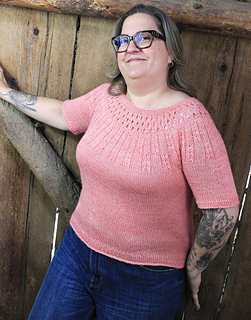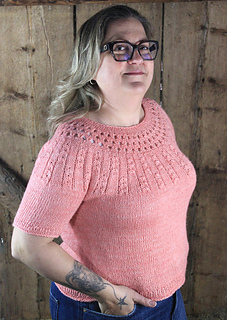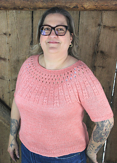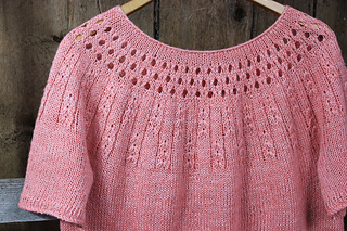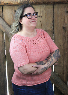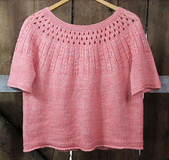 Phléole is a lightweight, airy T-shirt designed to be both enjoyable to knit and comfortable to wear.