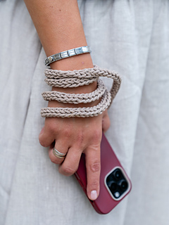A crochet pattern for a crossbody phone strap — functional, lightweight, and modern. This design combines everyday practicality with a handmade touch, making it easy to carry your phone hands-free while adding a subtle textured detail to your look.