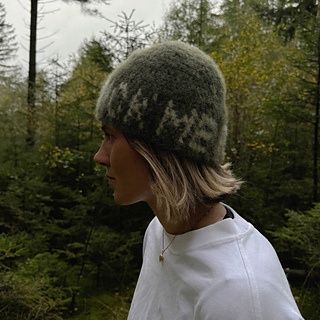Main colour: 50 g Brushed Alpaca Silk from DROPS in colour 32 Moss Green (25 g/140 m)