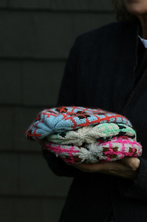 20 sts and 22 rows = 4” / 10 cm in stranded colorwork in the round, blocked