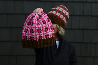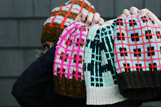 Hats shown used Plucky Knitter Halo Worsted (100% cashmere; 195 yds / 178 m per 100 g) or Plucky Knitter Pippi Worsted (95% merino, 5% nylon; 225 yds / 206 m per 100 g) in the following amounts: