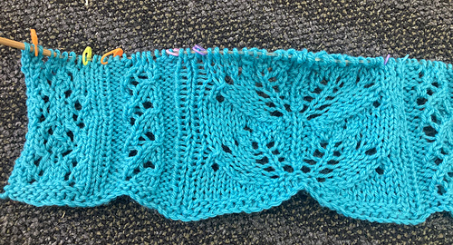 This is a very basic lace pattern that gives you both a chart and written stitch instructions. You will be purling through the back loop so if you hate that, turn away now.