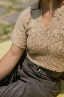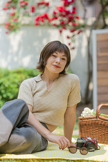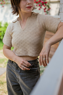 The Picnic Polo is a modern take on the 70s polo tee. It has a lovely Tunisian crochet basket stitch pattern. Individual panels and sleeves are worked flat from the bottom up, then sewn together. Collar and ribbing are crocheted directly onto panels.