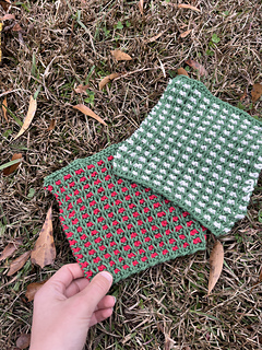 When finished and worked to pattern, this dishcloth measures 6.5” square. However, instructions are provided the adjust the length/width however you prefer!