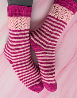With a cabled lace panel to evoke memories of the Hundred Acre Wood and quick-to-knit stockinette stripes, the Piglet Socks make a great gift for a friend or for yourself. Adult-sized socks use about 50 g of each color, so the pattern is perfect for making a matching pair for your little one or for your best friend.