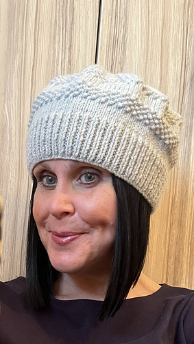 The beanie is knitted using an Aran weight yarn and generally uses around 70g of yarn.