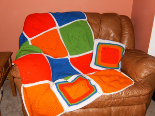 Make thirteen 18-inch blocks. You can use any style granny square.