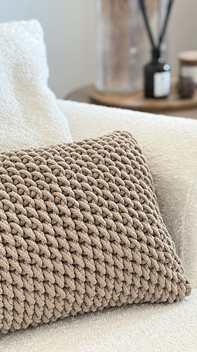 This project is perfect for those who enjoy working with chunky cotton cord and want to make a stylish cushion for their living space.