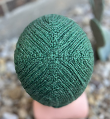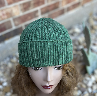 The Beanie: This hat has a unique crown which can only be created using the Flexee Loom Links Skinny loom. My special double decreasing crown technique is most suited to an intermediate loom knitter. This design makes a really cute “+” on the top of the hat and the crown doesn’t “swirl” like so many decreasing crown designs do. The green hat is an example of this style.