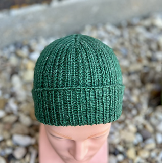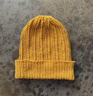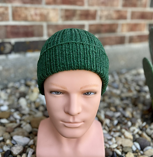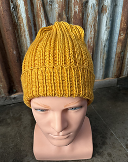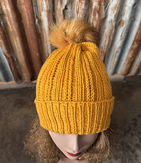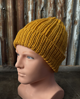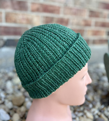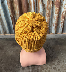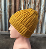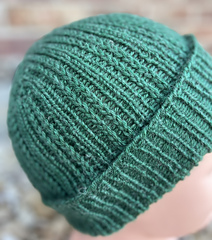 The Pinehurst Hat is a richly textured unisex hat. The pattern includes instructions to make a beanie (the green hat) or a winter stocking hat (the gold hat).