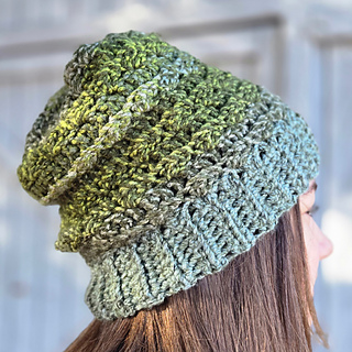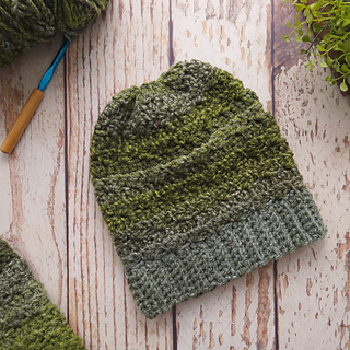 This textured crochet hat uses just a little bit of self-striping bulky yarn.