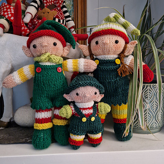 Pip the Baby Elf is a sweet, small knitted character designed to sit perfectly alongside his larger elf family members. With his soft proportions, wide little eyes, and classic festive outfit, Pip is intended to be quick to knit, gentle in style, and full of handmade charm.