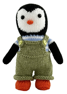 This charming little penguin is full of personality, wearing cute overalls and a tiny knitted bag—perfect for adding to a handmade toy collection or gifting to someone special.