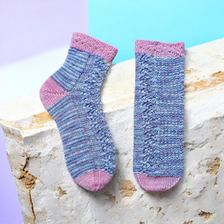The pattern includes two heel options a boomerang heel with German short row construction without intersections and a classic heel with flap & gusset and a normal toe which can be easily substituted with your favorite heel or toe.