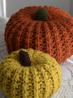 6 included sizes. Make smaller pumpkins by using DK or sport weight yarn, or go jumbo with super bulky yarn.