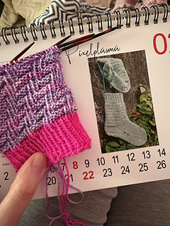 Die Anleitung dieses Sockenstrick-Musters ist in Größe 39/40, also für 64 Maschen konzipiert, du kannst es aber selber anpassen, indem du rechte oder linke Maschen einfügst.