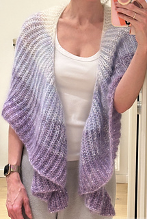 Pixie Dust Shawl ist ein zarter Halbmond-Schal, gestrickt in drei sanften Pastellfarben. Von oben nach unten gearbeitet, fällt seine elegante Form wunderschön um den Hals und ist angenehm zu tragen. Du benötigst je einen Strang pro Farbe – perfekt für ein leichtes, verträumtes Accessoire mit weichen Farbverläufen.
