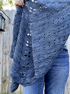 The Pixie Trail shawl is a lightweight shawl that will add an enchanting touch to your wardrobe! It features a mix of both basic and unique crochet stitches and techniques to create mesh/lacework that resembles a trail of fairies that float up the center of the shawl.