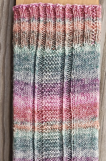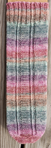 Not as boring as a plain vanilla sock; just a little something to hold your interest. Should work well with those skeins of variegated yarn you don’t know what to do with.
