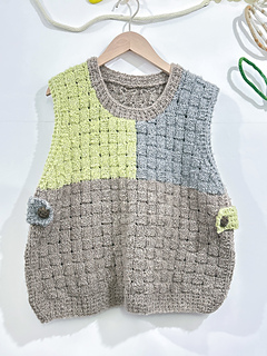 Inspired by winter light, this vest weaves seasonal colors into a soft, structured check pattern.