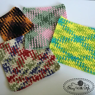 All of the dishcloths pictured were created with one yarn, no changing colors, the yarn does that for you. With a little planning these come together beautifully! It’s almost like magic!
