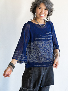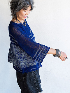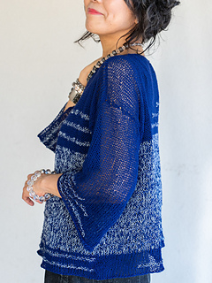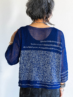 Plateau has a unique fabric and features color play. Using only knit and purl stitches, the larger gauge makes a sheer fabric for a feminine and elegant look.