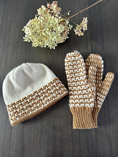 Platysma Duo is a hat and mitten set using two colors of DK weight yarn. It’s a beautiful collaboration with Entre Soeurs et Laine for the German Christmas market! This set is knit in a mosaic pattern, so you always knit with one strand of yarn at a time. The double-folded brim of the hat is perfect for keeping ears warm!