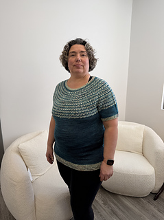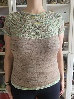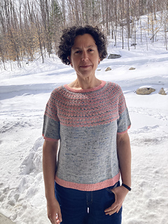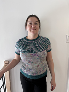 Spring is just around the corner, and it’s finally time to think about lighter knitting projects! To welcome the warmer weather, I’m delighted to present the Platysma Tee! It’s knit in fingering weight yarn, top down, in the round, seamless, featuring a mosaic pattern that creates a beautiful texture and adds rhythm to the knitting! Using yarn from Bar à Tricot, this design will be featured at their booth at Knit City Toronto all weekend!