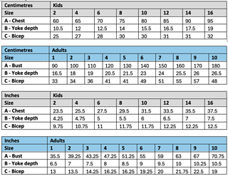 Measurements provided in the attached images are the intended measurements of the fully blocked and dried garment – not body measurements. Aim for at least 10cm/4in positive ease on the chest/bust measurement.