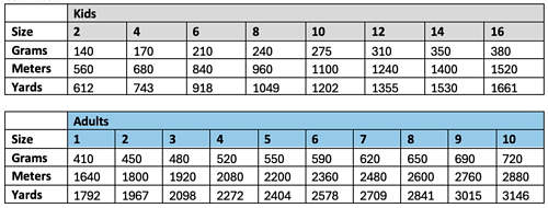Yarn estimates based on hip length torso, and full length tapered sleeves. Any alternation will require yarn estimate adjustments. I recommend having slightly more yarn to work with than estimated.