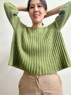 Green top with sleeve: Wool & Hues In Bloom (450m/50g, 250m/50g, 50% Extra fine merino 22% Kid Mohair