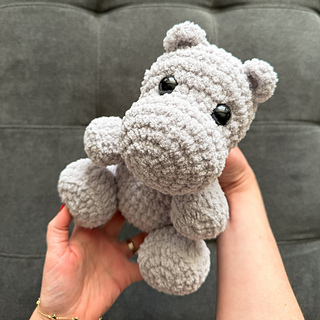 The finished hippo stands about 8 inches tall, and the arms are slightly movable, giving it added personality and play.