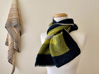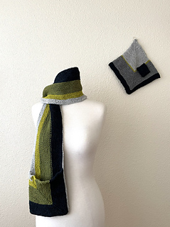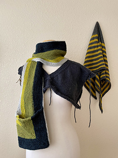 While I used scraps for the sample shown, this scarf can be knit in one skein of Woolstok 150 plus 1-2 50g skeins of Woolstok Worsted, or one skein of Woolstok 150 and a mini-skein set. The latter combination has enough yardage to knit both the small/medium scarf and a small/medium Pocket Edition Hat.