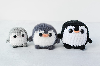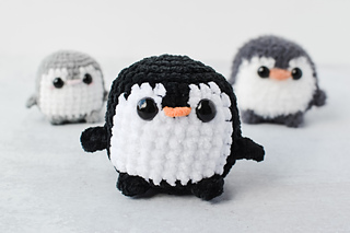 This intermediate no-sew pattern is written in U.S. crochet terms, complete with clear instructions and video tutorial to help you along the way. Pocket Penguin is crocheted in the round/continuous spirals without joining the rounds. I suggest using a stitch marker or different color yarn to keep track of each round. Pocket Penguin is crocheted in worsted weight (4) yarn or super bulky weight (5 or 6) yarn. Pocket Penguin is approximately 2 inches tall in worsted weight and 3-3.5 inches tall in bulky weight. Be aware that size may vary depending on the yarn and hook size used. Gauge is not particularly important, just be consistent with the tension you are using. And most importantly, have fun!