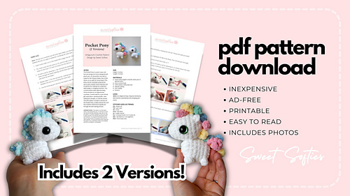 Free version of the pattern viewable at: https://www.sweetsofties.com/2026/01/pocket-pony.html