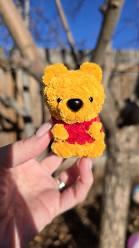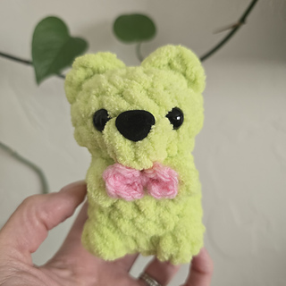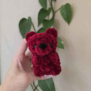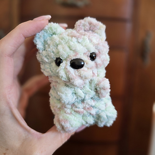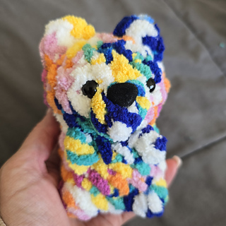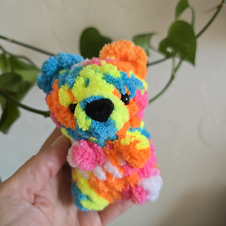 It’s a plushie yarn designed mini teddy bear that works up all in one! It’s no-sew and a great stash buster. There’s no limit to the color combinations you can make!