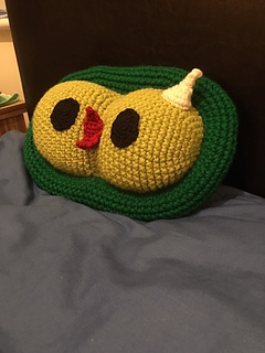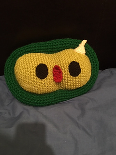 Requires red and cream/yellow DK yarn, lime and emerald green chunky yarn and black yarn in either DK or Chunky. Teddy bear stuffing is also required for stuffing the plushie.