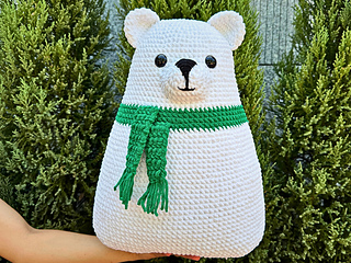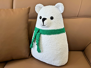 Create your own adorable White Bear Crochet Pillow with this charming pattern from TheCrochetMina!