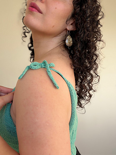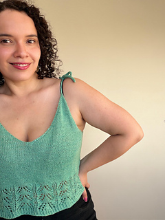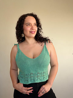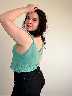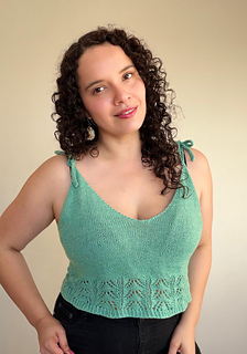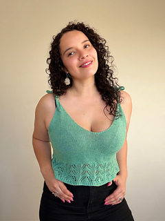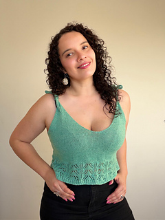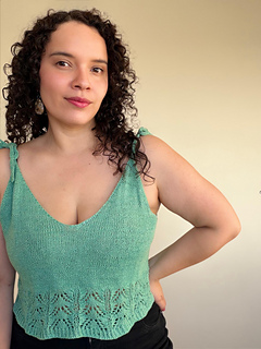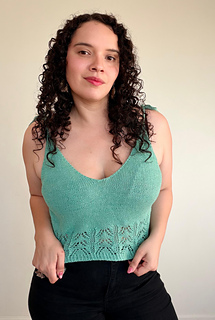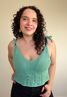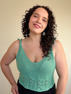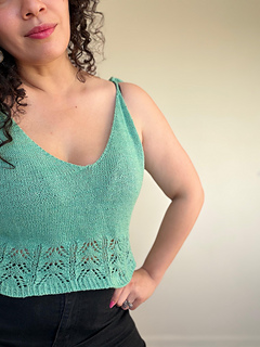 Al alcanzar la altura de talle deseada, comienza la parte final de la polera, trabajada con un punto calado fantasía, que añade un detalle decorativo manteniendo la caída recta de la prenda.