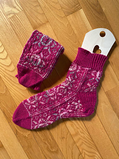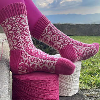 This toe-up knitted socks pattern is a nice example of stranded colourwork. Intermediate level knitters should be fine with this pattern, but if you’re a beginner and want to challenge yourself, I’m always happy to help.