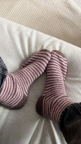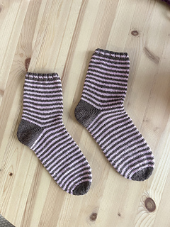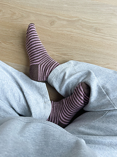 Polka Socks are the perfect everyday socks. They are worked in a stripe pattern from the cuff down in the round, and the heel is shaped with short rows.