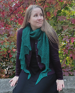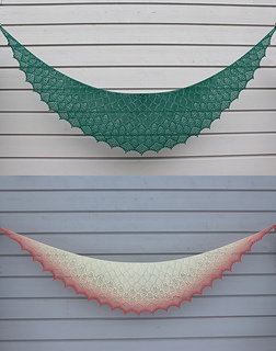 Yarns used in sample shawls are West Yorkshire Spinners Exquisite Lace, Isager Highland Wool and Wollelfe Merino Pure (discontinued). Prepare with extra meterage - there are no instructions to switching to a smaller size in the middle of a project.