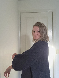 Knit pullover using one strand of pom pom wool. Please calculate more meters, if you prefer longer sleeves or body length.