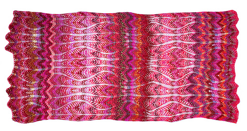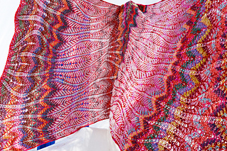 The pdf includes a chart, notes, instructions, lots of photos and a splicing phototutorial. This is a charted pattern with some notes on brioche techniques. For clarity and ease of use, the chart shows patterned rows only and does not use standardized Brioche symbols and notation. Stitches include multiple increases, and left and right-leaning decreases.