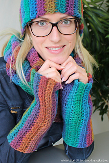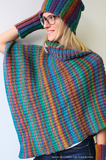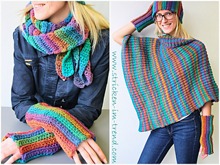 ein zartes Halstuch, eine passende Mütze und Stulpen – alles perfekt auf den Stil und das Garn des Ponchos abgestimmt.