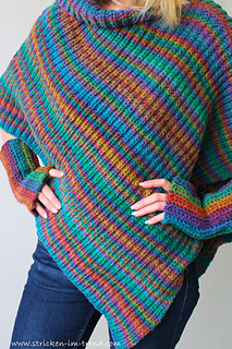 Der Poncho wird zweigeteilt gestrickt und im Halbpatentmuster gearbeitet – klassisch, schlicht und wunderbar anschmiegsam.