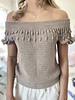 The Popcorn Breeze Top is worked from the top down. It’s an easy and enjoyable project that results in a versatile, year-round garment. The top can be worn off the shoulder or styled as a classic boat neck. The top-down construction also makes it easy to customize the fit and length to suit your personal preferences.