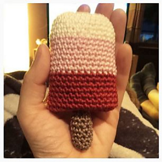 This is a quick pattern to use up some leftover cotton yarn. You need light brown for the stick and two or three bright colours for the popsicle itself!
